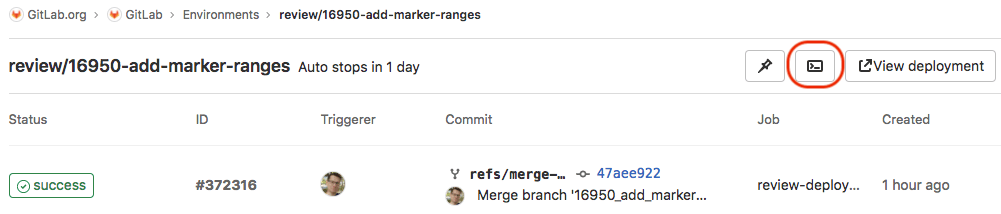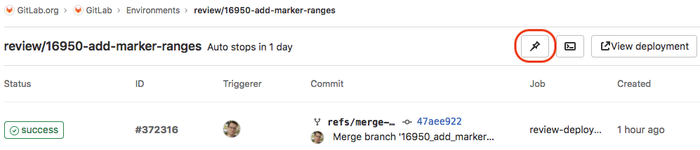 GitLab creates a special Git-ref to the deployment.
