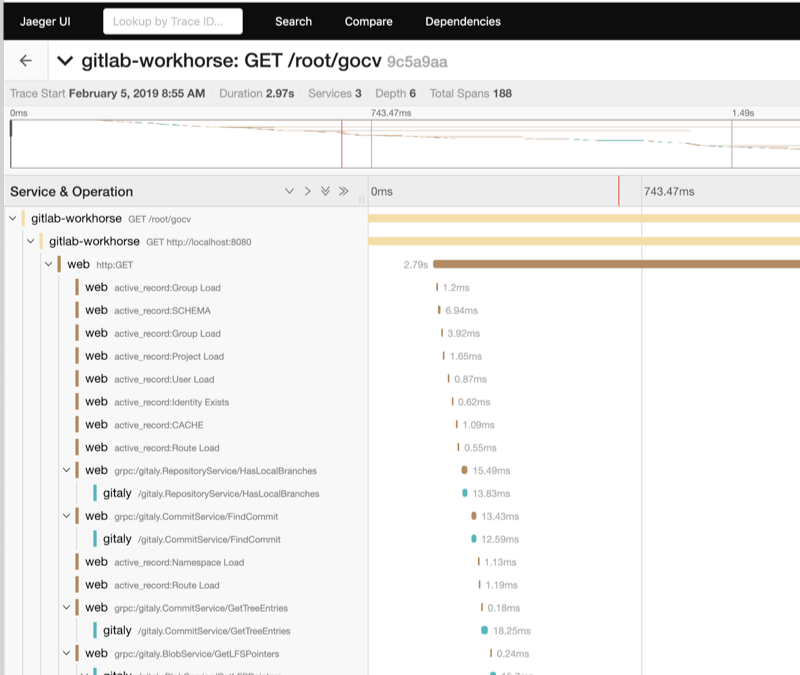 The first tracing implementation that GitLab supports is Jaeger, and the GitLab Development Kit supports distributed tracing with Jaeger out-of-the-box.