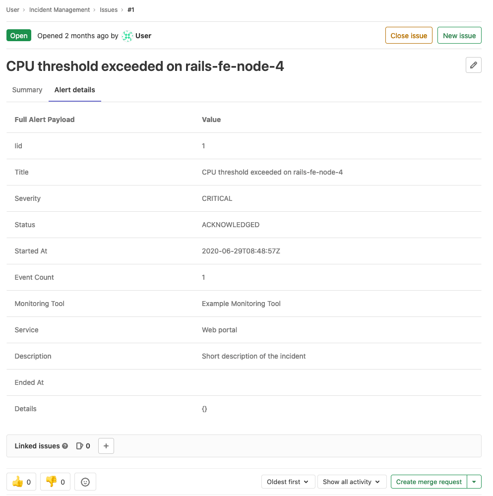 The incident summary can be further customized using GitLab Flavored Markdown. If the corresponding alert provided Markdown for the incident, then the Markdown is appended to the summary after the above alert fields. If an incident template is configured for the project, then the template content is appended at the end.