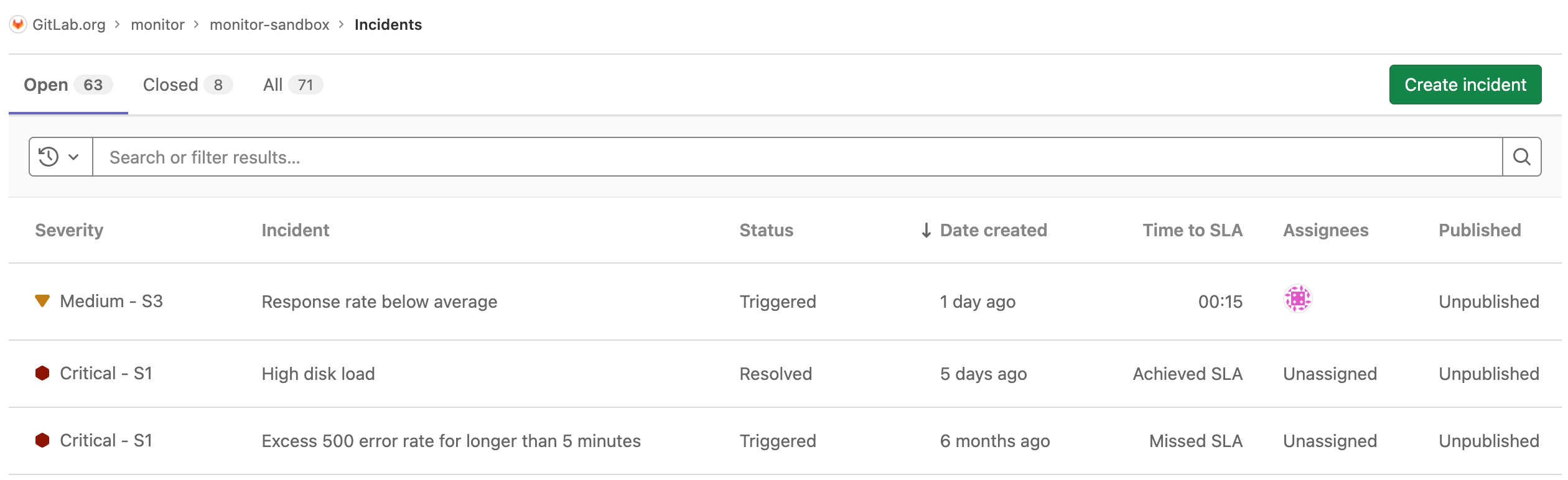 NOTE: For a live example of the incident list in action, visit this demo project.