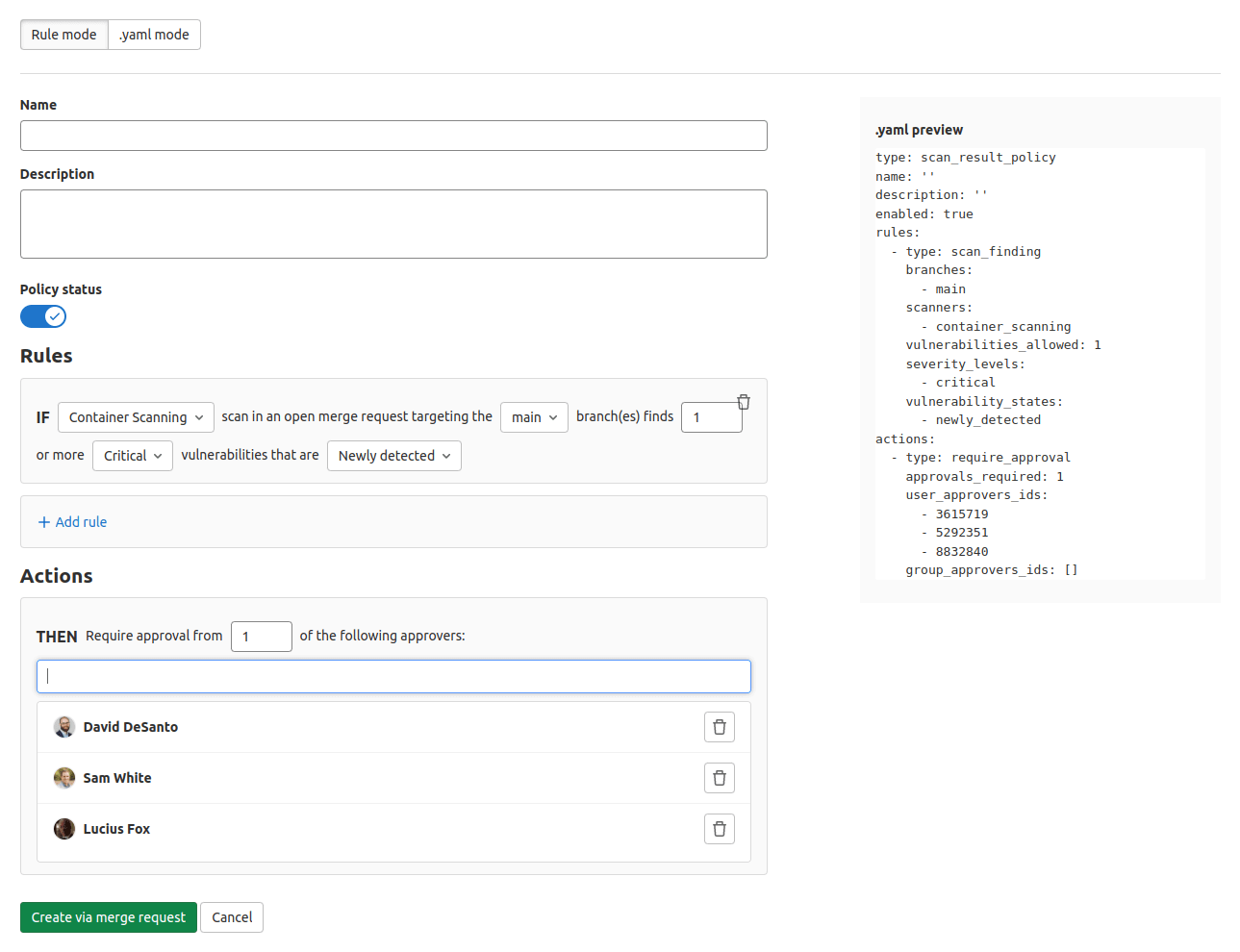 See Scan result policies.