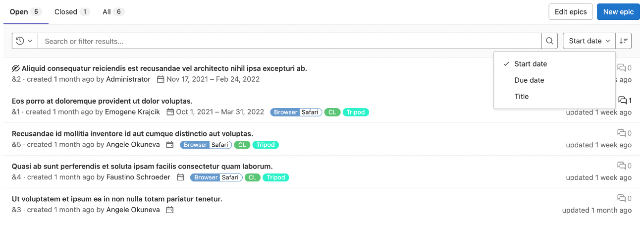 - For the due date: GitLab scans all child epics and issues assigned to the epic, and sets the due date to match the latest due date found in the child epics or the milestone assigned to the issues.