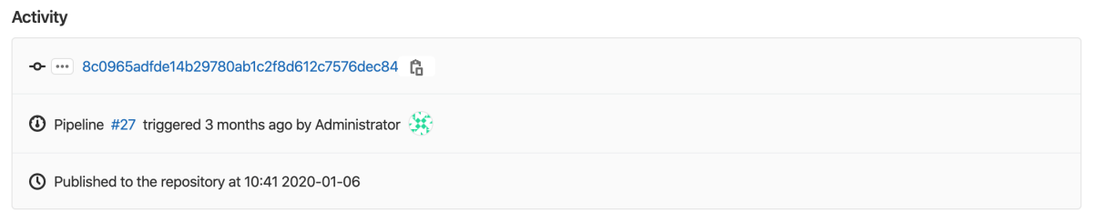 If you use CI/CD to build a package, you can find extended activity information when you view the package details: