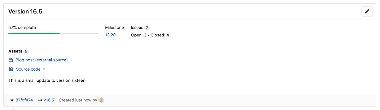 - Attach release assets, like runbooks or packages.