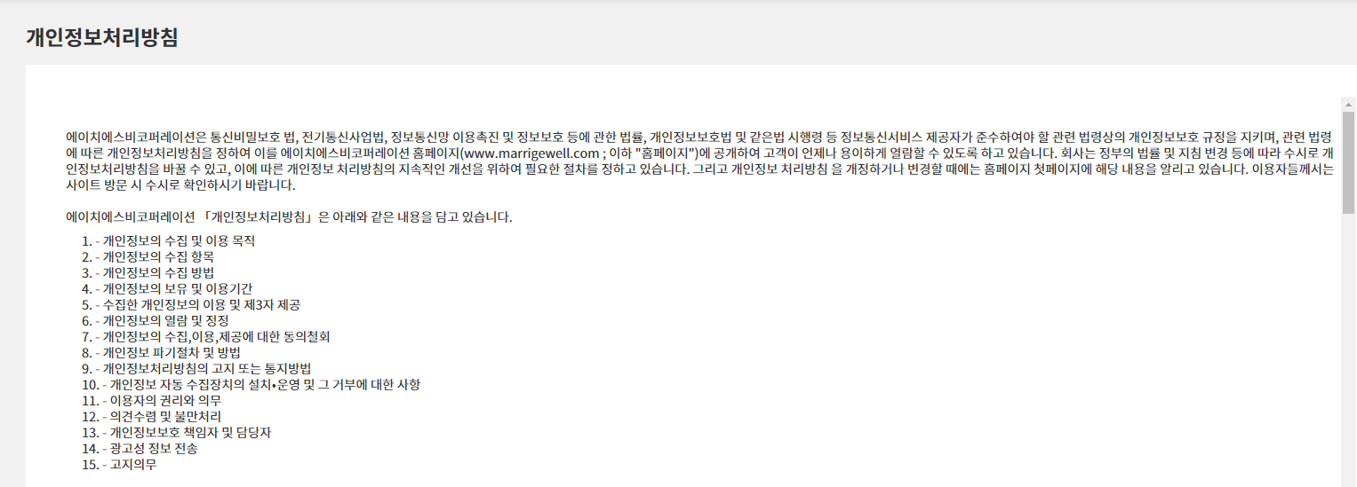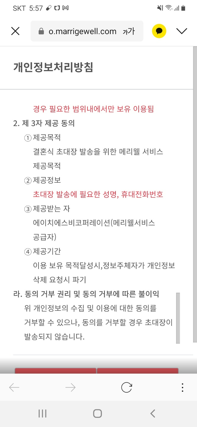 모바일 초대장에서 개인정보 동의시 나오는 개인정보처리방침에도 회사명 변경