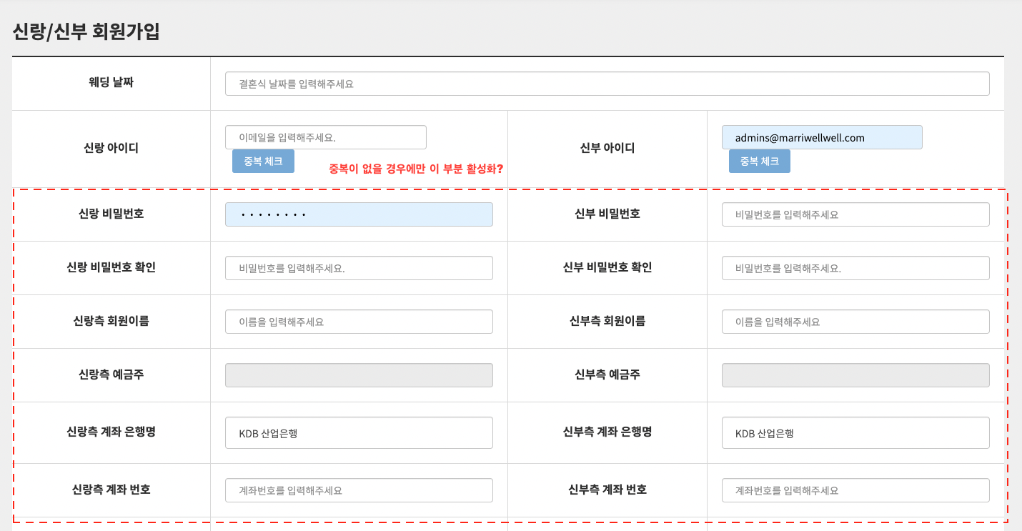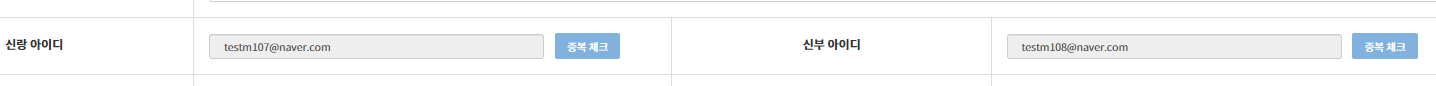 1. 신랑 신부 아이디 입력 후 중복 체크 한 이후 -> 아이디를 다시 수정할수 있게 변경
